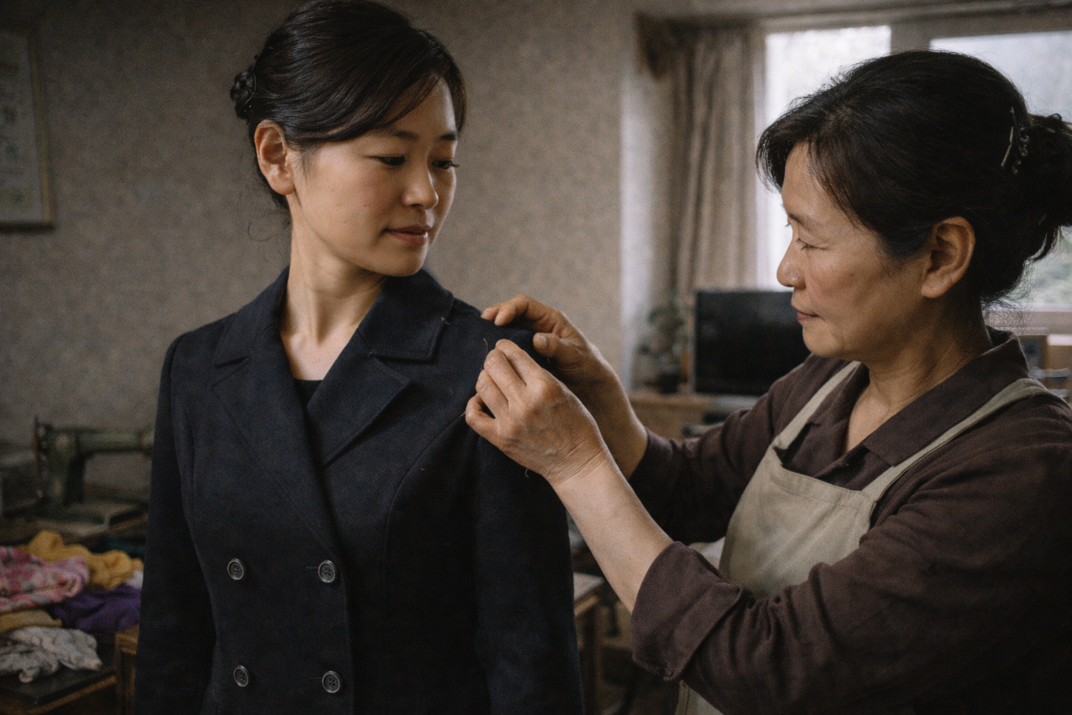 여기서 평양 여성들만의 기발하고 애틋한 '인정야담'이 피어납니다. 옷을 산 여성들은 곧바로 단골 수선집으로 향합니다. 그곳에서 가장 먼저 하는 작업은 '메이드 인 코리아'라고 적힌 상표를 조심스럽게 떼어내는 일입니다. 그리고 옷의 디자인을 살짝 수정합니다. 바지통을 조금 넓히거나 화려한 단추를 국산 단추로 교체하여, 얼핏 보면 평양의 '선봉'이나 '은하수' 브랜드 제품처럼 보이게 만드는 것이죠. "이거 국산이라요"라고 당당하게 말하면서도, 속으로는 아랫동네 드라마 속 주인공이 된 듯한 기분을 느끼는 그녀들의 모습은 참으로 묘한 여운을 남깁니다. 예뻐지고 싶은 본능이 엄격한 규율마저 교묘하게 피해 가는 셈입니다.